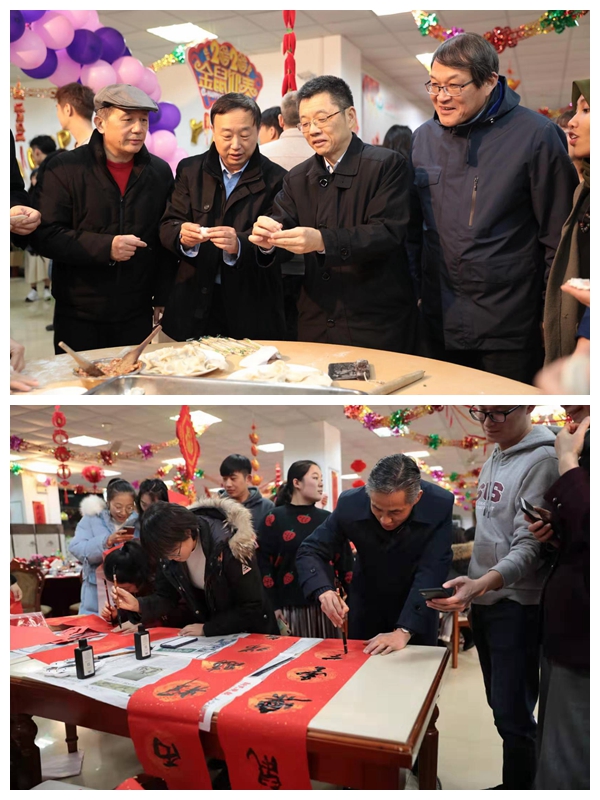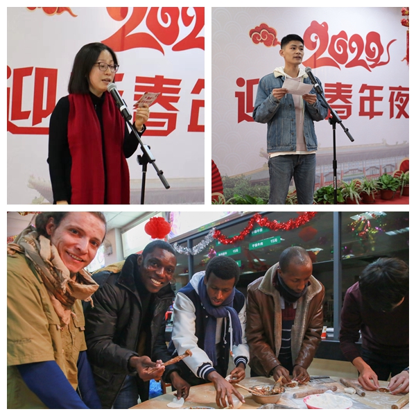 休闲学院学生、“红色筑梦三项赛”项目组成员韩宏宇作为留校学生代表,向大家分享了参赛期间的心得体会及参加年夜饭的感受并祝大家新年快乐。本次年夜饭活动增设了迎新春民俗活动环节,包饺子,写春联,剪窗花,大家一同感受传统中国年的魅力。