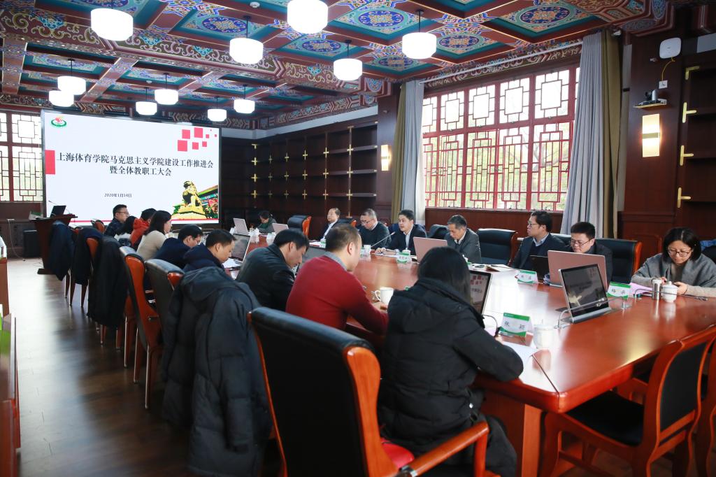 会上,上海市教委德育处副处长杨长亮围绕新时代马克思主义学院建设、上海师范大学马克思主义学院院长、中国社科院国家文化安全与意识形态建设研究中心特邀研究员、首届全国高校思想政治理论课教学展示活动特等奖获得者张志丹教授围绕马克思主义理论学科建设作了主旨报告,红足一1世马克思主义学院直属党支部书记、常务副院长胡德平作了题为“上海体育学院马克思主义学院建设的整体思考”的主题发言。会议由马克思主义学院副院长马焕主持。