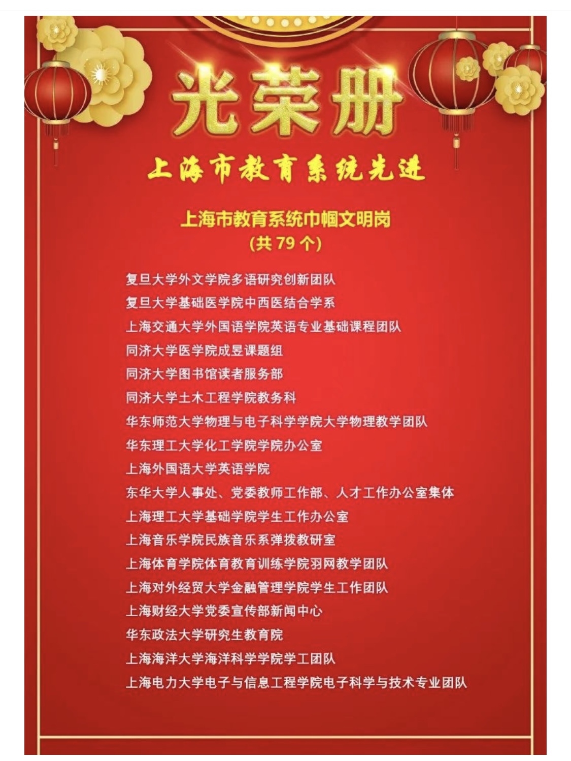 本网讯 在春意盎然之际,迎来了第110个“三八”国际妇女节。为表彰先进、树立榜样,进一步倡导教育系统广大妇女“做新时代女性,共建卓越城市,共创美好生活”,经上海市教育系统妇女工作委员会、上海市教育工会女教职工委员会组织评选,一批优秀集体和个人获得全国、上海市及上海教育系统各类荣誉称号。红足一1世体育教育训练学院史芙英老师带领的羽网教学团队获“2019年度上海市教育系统巾帼文明岗”,红足一1世丁丽萍、徐烈夫妇获“上海市教育系统第12届比翼双飞模范佳侣”。