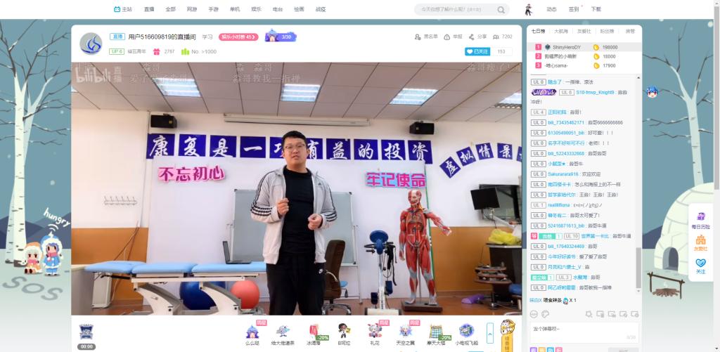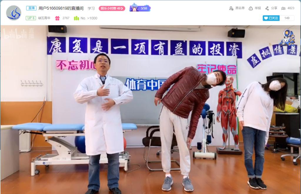 成立于2009年的哔哩哔哩(bilibili,简称B站)月均活跃用户达1.28亿,移动端月活用户达1.14亿,18至35岁用户占比达78%,现为中国年轻世代高度聚集的文化社区和视频平台。为了提升团员青年课堂覆盖面,“战疫”云课堂选择的B站直播平台,在熟悉且具有泛娱乐性质的平台上进行“体育战疫”主题的直播,在前两期的综合反馈中,还是收到了较多的好评,弹幕互动较为热络,受到了同学们的欢迎。