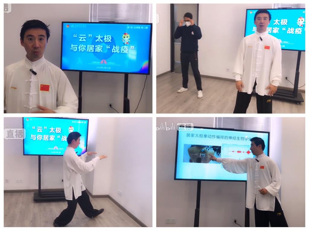 本系列“战疫”云课堂,以“1小时+1主题”的播出形式,制作适合当代青年有效收看的直播视频时长及直播主题内容,先后和运动科学学院、武术学院及国际教育学院合作完成“体医融合”及“云太极”两堂直播课程。王雪强老师在其主讲的《运动防治颈腰痛》篇章中,通过理论结合实践的方法,教会了直播间里的学生们3-5分钟的居家运动小妙招;王淼老师带来的《三件有关中医的居家小事》为大家普及了中医的知识及基本中医保健的好方法;朱东老师为直播间带来了一堂“会飙汗”的太极课,通过扎实的套路动作,一个个动作为大家展示太极拳的居家保健打法。两期网络直播课都受到了校内外的广泛关注。