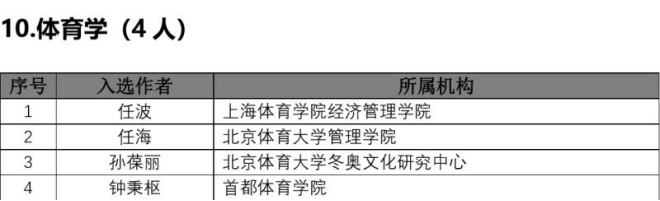 据悉,《复印报刊资料重要转载来源作者(2019年版)》是继2016版后的第二次发布。此次研制根据各学科特征分别厘定了入选标准,依据复印报刊资料2016—2018年间的转载数据和同行专家评议结果,从转载的角度反映了这3年期间中国人文社会科学领域较为突出、较为活跃的学者群体,体育学科仅有4人入选。