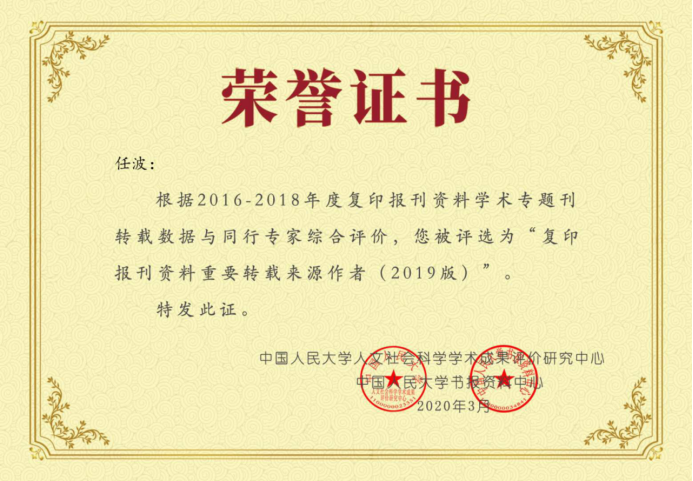 任波是经济管理学院2018级博士研究生,在2019年以第一作者发表3篇cssci期刊,1篇cssci扩展期刊,代表学校参加第三届“东吴体育博士论坛”,获得全国唯一一个“学术之星”。此次入选“复印报刊资料重要转载来源作者”,这充分肯定了我院博士研究生扎实的专业基础,严谨的科学思维、杰出的创新能力、深厚的知识素养。