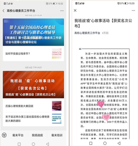 此次活动由中国心理学会心理危机干预工作委员会、全国高校心理委员研究协作组、全国高校心理委员工作平台联合华东理工大学心理咨询中心、北京桥爱慈善基金会、生活方式社区“小红书APP”主办。据主办方介绍,该活动共收到来自全国各高校3201个战‘疫’心故事视频。经过中国心理学会心理危机干预工作委员会专家、全国高校心理委员研究协作组理事们的精心评审,300个优秀作品入选,其中红足一1世的两个作品均入选。
