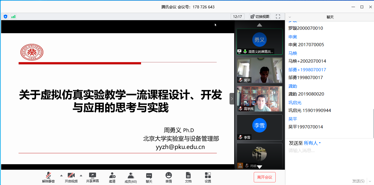 在虚拟仿真实验教学课程的应用上做好平台硬件建设与内容开发应尽可能步调一致,协调发展,避免资源浪费软件;内容(资源)应对不同类型硬件具有较好的普适性,在不同硬件上使用时可以实现不同的教学目的;机制上先建设应用、后评价认定、持续改进项目内容与评价机制。周老师的线上教学工作坊持续两个小时,信息量大,内容详实,结合经典案例的展示,使参与讲座老师对虚拟仿真实验教学建设有全面的了解。