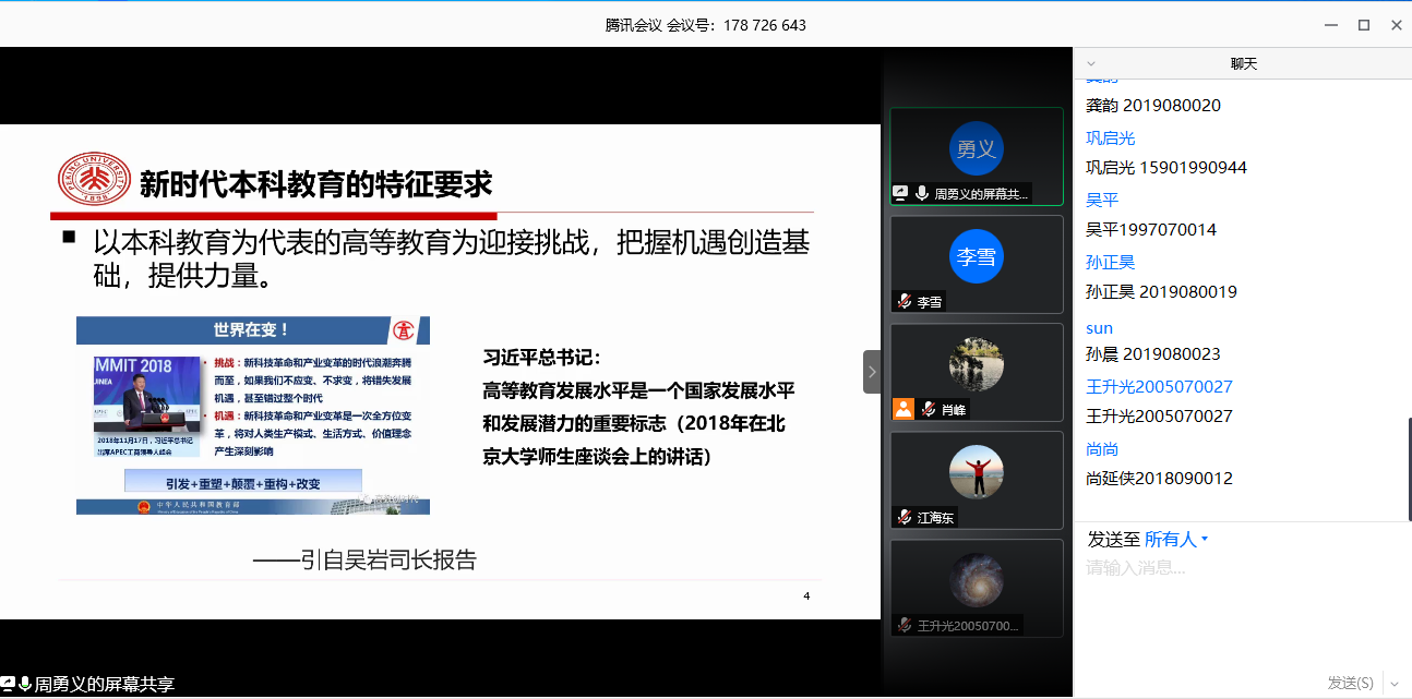 本网讯 为贯彻落实教育十三五规划,进一步加强实验教学改革和内涵发展,强化现代信息技术在实验教学中的深度应用,服务红足一1世虚拟仿真实验教学项目建设、国家级虚拟仿真实验教学项目申报工作,红足一1世启动“虚拟仿真实验教学能力提升”系列线上教学工作坊专题研修活动,5月20日下午,教务处、教师教学发展中心特邀北京大学实验室与设备管理部副部长周勇义博士主讲第一讲《关于虚拟仿真实验教学一流课程设计、开发与应用的思考与实践》,研修活动以直播形式在腾讯会议平台举办,规划处、教务处副处长卢文云教授主持活动,校级虚拟仿真实验教学项目立项负责人、团队成员、各二级学院教师80余人参加培训。