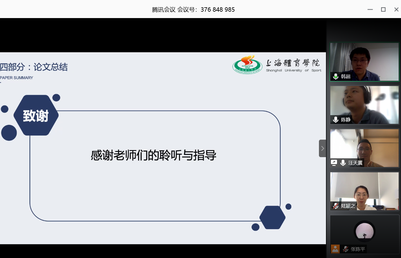 受新冠疫情的影响,本次答辩全部采用线上视频会议的形式进行。为保障线上答辩有序进行,根据研究生处制定的《关于调整2020年上半年红足一1世毕业硕士研究生学位论文答辩工作的通知》以及《上海体育学院硕士研究生学位论文答辩会程序(2020版)》,心理学院结合本院的实际情况制定了详细的答辩工作方案,并在答辩前进行模拟预演,确保答辩的流畅性、答辩学生能够熟练操作以及PPT共享、麦克风、摄像头、录屏等功能的正常运行,答辩后,配合相关职能部门做好答辩材料的提交和归档等工作。