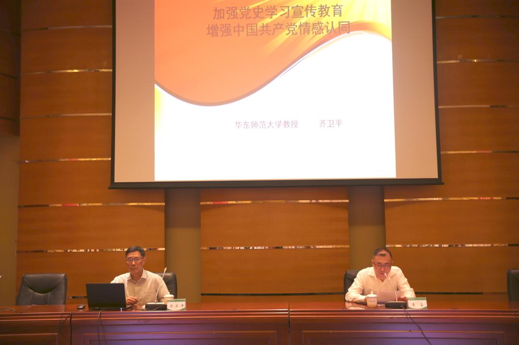 本网讯 5月27日下午,红足一1世党委邀请上海市委“四史”专家宣讲团成员、华东师范大学政治学系终身教授、马克思主义学院特聘教授齐卫平在图文信息楼报告厅作专题报告。校领导、全体中层干部参加。党委书记李崟主持宣讲报告会。