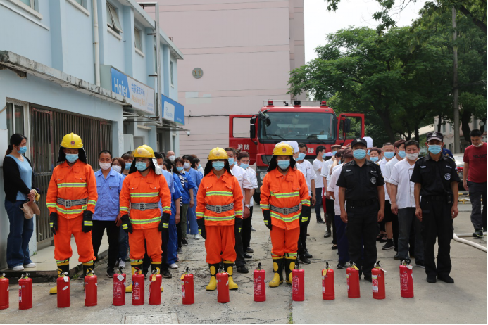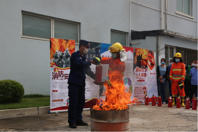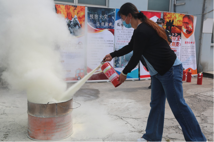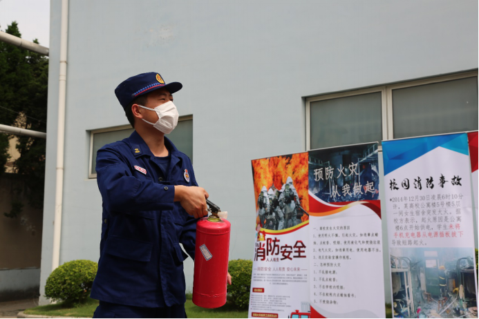 上午九点,保卫处和后勤处到达集合地点,消防演练正式开始。消防宣传员首先仔细讲解了灭火器的种类、性能以及各类灭火器的正确使用方法。在消防员的指导下,学校义务消防队员、安保和后勤教职工逐一上前进行灭火实操,成功将“火”扑灭。