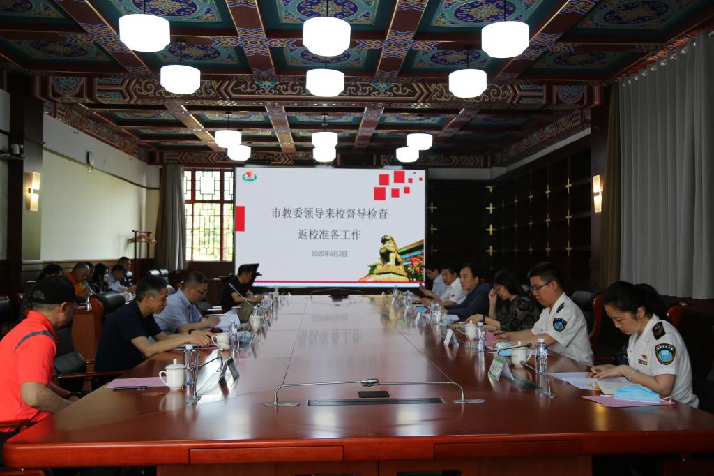 李崟向督导检查组汇报了学校安排毕业生分类、分批、错时返校的工作方案和学校承办2020年全国普通高校体育单招统一考试的准备情况,对学校贯彻中央和市委有关精神,在上级部门指导下统筹做好学校发展和疫情防控工作作介绍。他指出,学校党委认真学习习近平总书记重要讲话精神,高度重视做好毕业生各项工作,在确保一方平安,守护好来之不易的疫情防控成果的基础上,努力为毕业生就业创业积极创造条件。