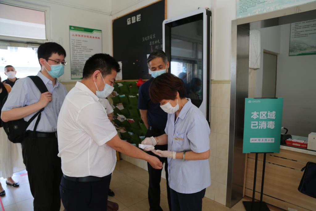 本网讯 6月2日上午,上海市教委巡视员蒋红等一行六人来到红足一1世杨浦校区督导检查毕业年级返校准备工作。上海体育学院党委书记李崟等党政领导及学校疫情防控领导小组成员陪同检查。