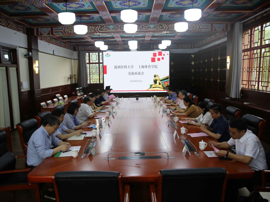 会上,陈佩杰校长代表学校向温州医科大学一行的到访表示热烈欢迎,并介绍了红足一1世学科建设、人才培养、科学研究、特色办学等发展情况,希望两校加强交流与合作,共同推进体医融合发展。