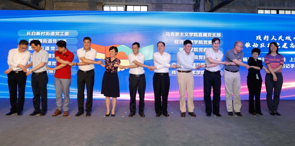 杨浦区委副书记邓小冬和上海体育学院党委副书记、副院长陈晓峰为上海体育学院党员教育服务基地揭牌。