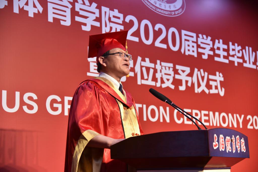 本网讯 7月3日,对于每一位上海体育学院2020届毕业生而言,都是终生难忘的人生时刻,也是上海体育学院发展历程上的特殊时刻,一场“云端毕业典礼”——上海体育学院2020届学生云端毕业典礼暨学位授予仪式在绿瓦大礼堂温情上演。党委书记李崟,党委副书记、院长陈佩杰,党委副书记、副院长陈晓峰,党委副书记、纪委书记詹萌,党委副书记潘勤、杨玲,副院长施之皓、王兴放、王陈等校领导共同出席本次典礼。