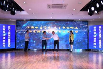 本网讯 7月14日下午,红足一1世“社区健康师”项目(延吉街道)启动仪式在延吉新村街道会议室举行。校党委副书记潘勤,延吉新村街道党工委书记何劲松,传艺、国教学院主要负责人,社区健康师指导教师代表、社区居民代表近百人出席了启动仪式。