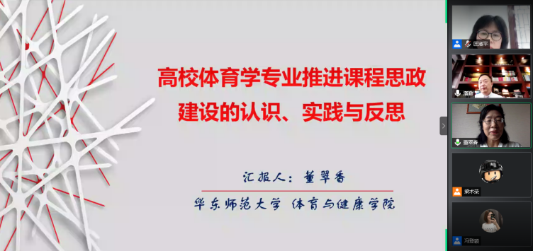 董翠香教授作题为《高校体育学专业推进课程思政建设的认识、实践与反思》报告,首先回顾了课程思政理念的发展历程,深度解读了课程思政的内涵特征,课程思政与思政课程的重要关系,接着以体育学专业课程思政实践为例对《高等学校课程思政建设指导性纲要》核心要义进行重点解读,认为课程思政建设应注意解决重专业素养培育、轻人格培养,重知识技能传授、轻情感价值培育,重低阶认知培养、轻高阶认知培育等问题,提出体育学专业课程思政建设需要做到课程目标引领、教学目标衔接、课堂教学落实。最后强调课程思政建设需要挖掘教学内容和教学方式中蕴含的思政元素,一要透过现象看本质,二要紧密联系实际,三要润物细无声,课程思政是方法,而不是加法。