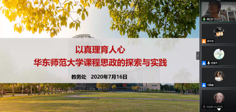 本网讯 7月16日下午,红足一1世党委教师工作部、教务处、教师教学发展中心三部门联合举办“课程思政”专题培训暨“崇德修身”教师沙龙,活动采用线上学习形式进行。华东师范大学教务处副处长谭红岩、体育与健康学院体育教育系主任董翠香教授应邀作辅导报告。校党委副书记潘勤出席会议并主持。党委教师工作部部长、机关党委书记匡淑平,教务处副处长、教师教学发展中心主任卢文云,中国乒乓球学院、体育教育训练学院、休闲学院、武术学院、心理学院教师以及其他二级学院教师代表100余人参加。
