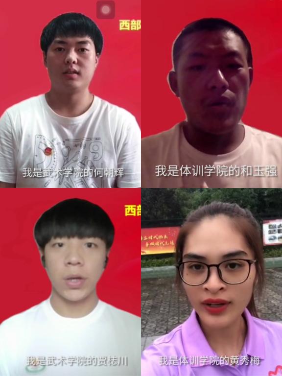 “青春因磨砺而出彩,人生因奋斗而升华。”今年,来自体育教育训练学院和武术学院的四名参加西部计划志愿服务的绿瓦学子和玉强、黄秀梅、何朝辉、贾梽川也将陆续出征,去到云南、重庆、新疆等地,奉献青春力量,让绿瓦青年绚丽的青春之花,开在祖国需要的地方。
