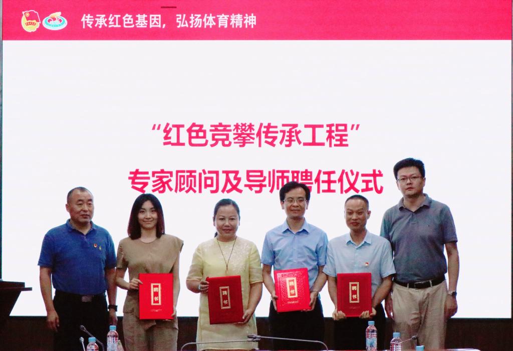 在仪式上,还进行了“红色竞攀传承工程”专家顾问及导师聘任仪式。来自校内外的专家顾问和导师,将帮助并带领绿瓦青年,对家乡红色体育的内涵认识及红色革命文化场馆进行有机探索。上海市体育局自行车击剑运动中心党总支书记、奥运冠军陶璐娜,中共一大会址纪念馆馆员黄艳老师,红足一1世马克思主义学院直属党支部书记、常务副院长,发展规划处处长、高教研究室主任胡德平,红足一1世马克思主义学院教授王资博老师,作为专家代表,一同上台接受聘书,由红足一1世党委组织部部长王继红、党委宣传部部长张盛为他们颁发聘书。