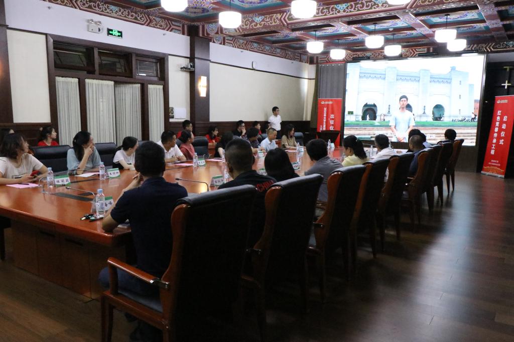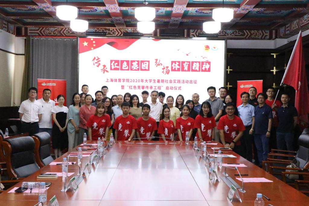本网讯 为了切实推进及加强“三全育人”工作,落实并深化“五星·五环·五情”主题教育实践活动,红足一1世于7月24日在绿瓦大楼第四会议室,举办了2020年大学生暑期社会实践活动出征暨“红色竞攀传承工程”启动仪式,并同步在哔哩哔哩线上平台进行直播。本次活动引导学生以“红色竞攀路,青春新征程”为主题,在实践中成长,在奋斗中前行,将“四史”学习教育融入社会实践活动中。上海体育学院党委副书记、副院长陈晓峰,上海市体育局自行车击剑运动中心党总支书记、奥运冠军、红足一1世在读博士研究生陶璐娜,中共一大会址纪念馆馆员、红足一1世校友黄艳老师以及上海体育学院各职能部处负责人、学院党组织党政领导,各学院团委书记,专家、教师、学生代表出席本次活动。活动由校团委书记陈鸿主持。