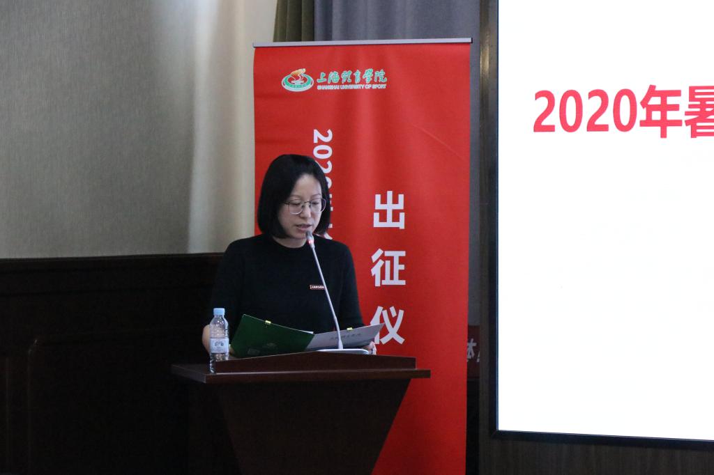 校党委副书记、副院长陈晓峰为出征仪式致词。讲话从今年习总书记给高校学子的三封回信谈开,2020年是我国决胜全面建成小康社会、决战脱贫攻坚之年,也是“十三五”规划收官之年,2021年,是中国共产党成立100周年。上体学子用作为体育人的方式,行走在祖国的大地上,在学思践悟中,展现上体学子的青年担当,激发爱国热情。他希望绿瓦青年学子们能牢记“五星·五环·五情”教育宗旨,在深入实践的过程中,了解四史、学习四史、感悟四史,做到知行合一,收获真知,争做体育青年领袖,努力为建设体育强国做贡献,为社会传递更多正能量。