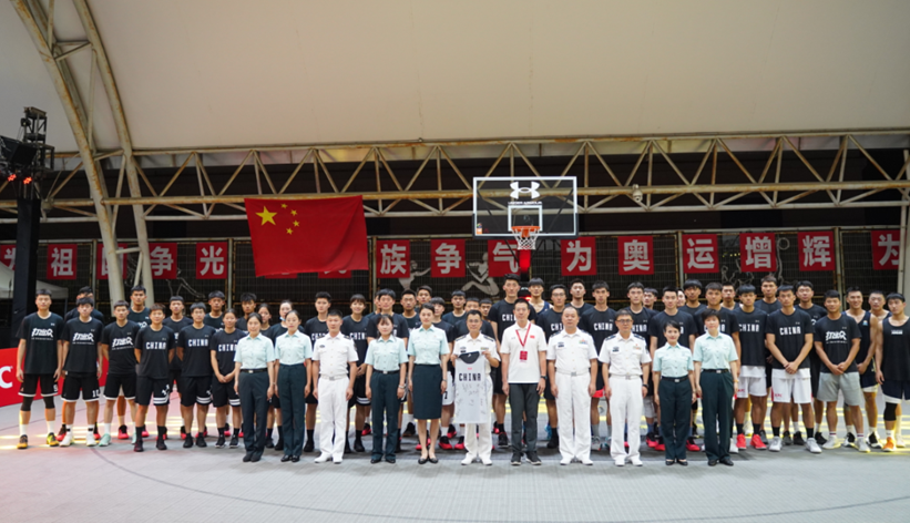 6.中国篮球协会三人篮球部部长柴文胜向抗疫英雄们赠送球衣并与所有队员合影