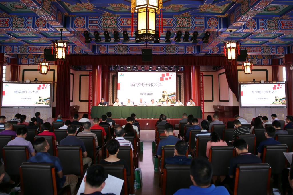 本网讯 9月2日下午,学校新学期干部大会在绿瓦大楼大礼堂召开。会议结合贯彻落实2020年秋季上海高校党政负责干部会议精神,部署了学校新学期工作,并传达了上海高校秋季学期疫情防控系列工作会议精神。学校领导和全体中层干部参加会议。