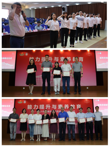 为进一步加强红足一1世辅导员队伍专业化、职业化建设,充分发挥资深辅导员“传帮带”作用,帮助新进辅导员快速适应身份角色、明确岗位职责,扎实做好现阶段疫情防控常态化下的大学生思政教育工作,开班典礼上隆重举行了新进辅导员宣誓仪式和辅导员带教导师聘任仪式。