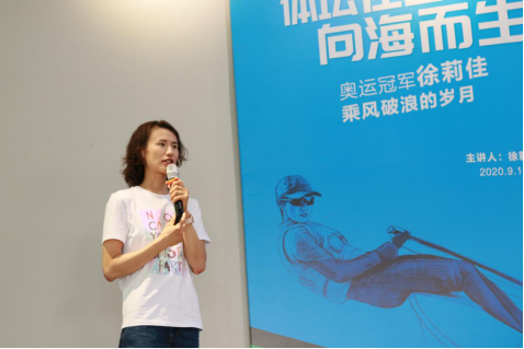 在活动中,徐莉佳与在场师生分享了她的”乘风破浪”的帆船人生。1997年她开启了自己的帆船生涯,并先后获得了2002年美国世锦赛冠军、韩国釜山亚运会冠军、2006年卡塔尔亚运会冠军、美国加州世锦赛冠军、2012年伦敦奥运会冠军等赛事奖项,取得个人职业生涯大满贯,并获邀成为伦敦奥运会中国代表团旗手。从10岁开始,徐莉佳不断以帆为翼、踏浪而行,在热爱与拼搏下,完成一次次美妙的海上之旅。她表示“挫折和困难会让你成为一个更好的人”,比输赢更重要的是对比赛的思考。徐莉佳强调,兴趣是最好的老师,正是对帆船运动的热爱,才让她不断前行和进步。为了推广帆船运动,在退役之后,她选择以体育媒体人的身份继续与深爱的帆船在一起,报道帆船赛事、宣传帆船项目。目前,她已经考取了记者证,将以媒体人的身份重返奥运赛场,带来帆船项目的一线报道。