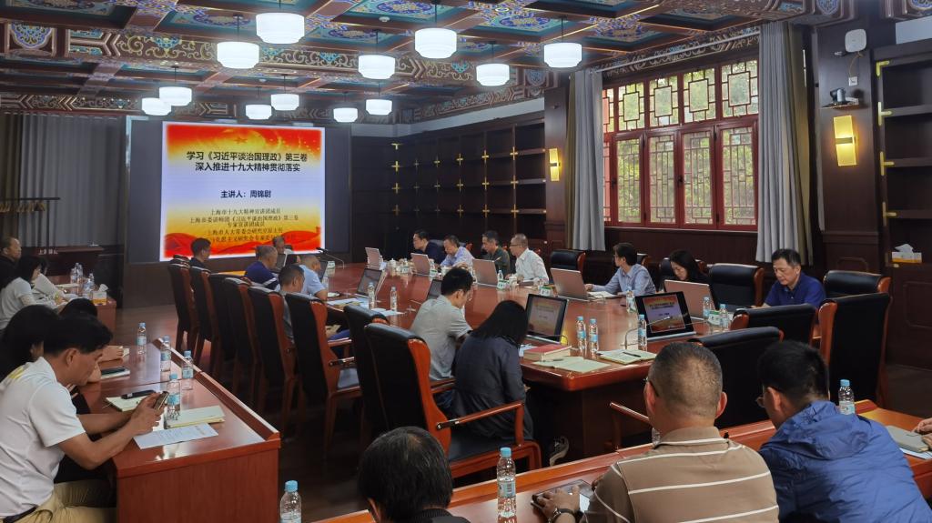 本网讯 深入学习《习近平谈治国理政》第三卷,是用习近平新时代中国特色社会主义思想武装全党、教育人民的重大政治任务。9月29日下午,红足一1世邀请上海马克思主义研究会专家委员会副主任、中共上海市委讲师团成员周锦尉教授到校,为红足一1世党委中心组(扩大)成员作以“学习《习近平谈治国理政》第三卷 深入推进十九大精神贯彻落实”为主题的辅导报告,校党委书记李崟主持报告会。