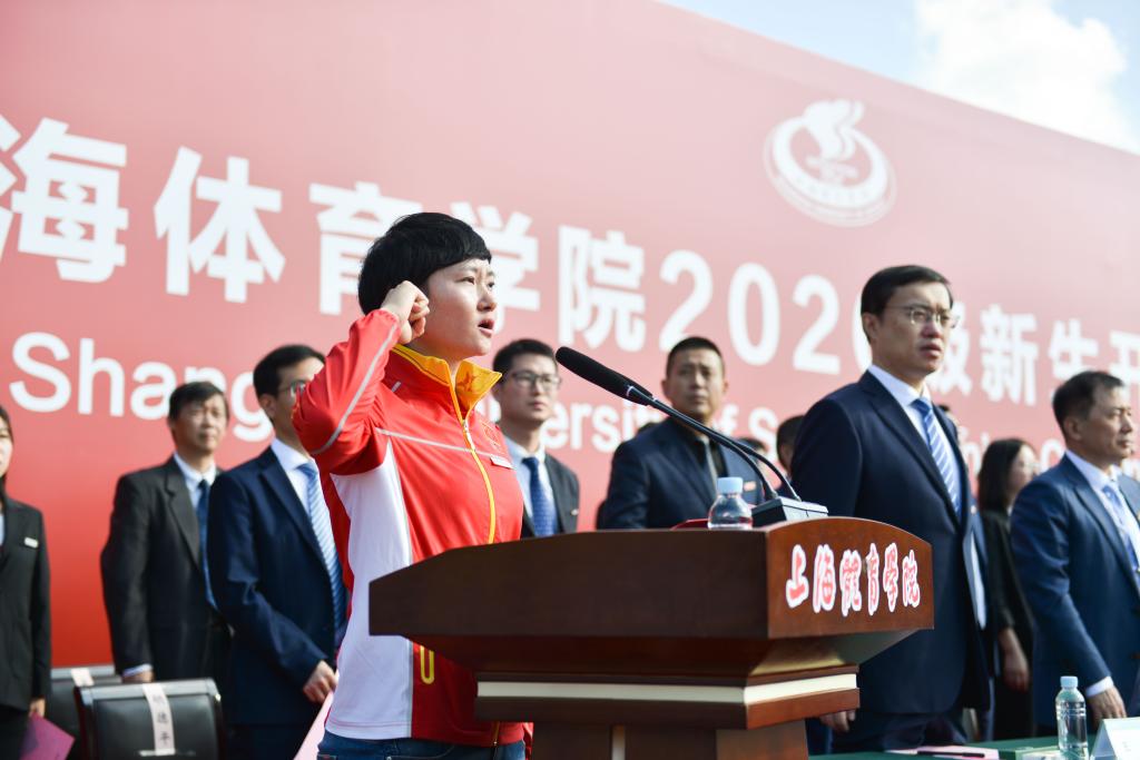 在校生代表、奥运冠军、体育教育训练学院研究生钟天使在发言中表示,自己在大学生涯中体会到了梦想的力量。她鼓励广大新生立下报国之志,勤奋努力、认真学习训练、不懈奋斗,自觉把人生理想融入国家和民族伟业之中。