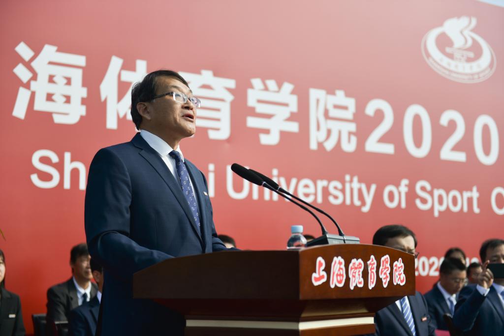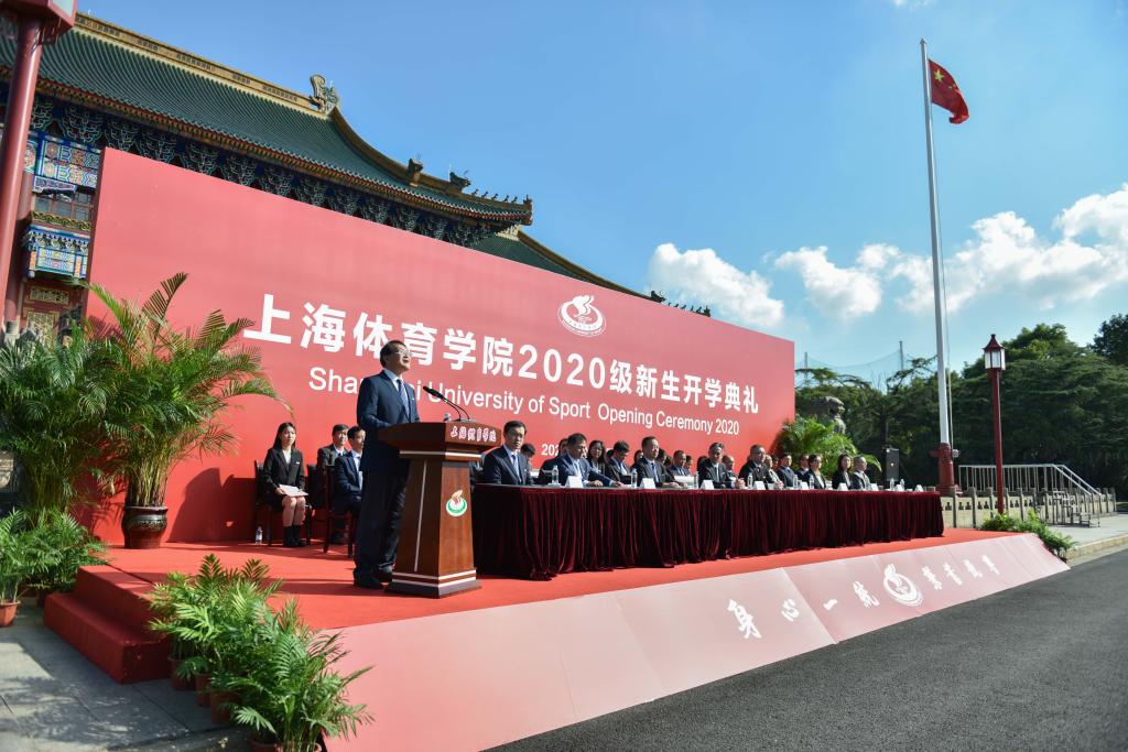 党委副书记、院长陈佩杰在典礼上作题为《用不懈探索叩开新旅程的大门》的寄语讲话,代表学校和全体教职员工向2000余位新生表示热烈欢迎。他指出,2020年是不平凡的一年。同学们克服疫情影响,全力以赴踏上求学深造新征程。学校的责任使命就是坚持立德树人的根本任务,持续推进人才培养事业,为中国体育事业和经济社会发展培养精英栋梁。