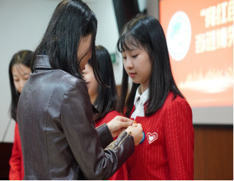 接着,新一届的小叶子们右手举拳,郑重宣誓,他们神情庄重,声音铿锵。铮铮的誓言表达了他们对进博会精神的传承、对进博先锋的表率,更承载着全体绿瓦学子的期待和重托。