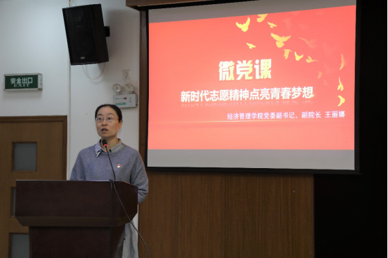 活动由经管学院党委副书记、副院长王丽娜主讲的“新时代志愿精神点亮青春梦想”微党课拉开帷幕。王丽娜书记从新冠肺炎抗疫一线医护工作者、志愿者动人事迹说起,又结合自身2008年作为志愿者教师出征北京奥运会的经历,深入浅出地分析了新时代志愿者精神的内涵以及如何践行新时代志愿精神。她强调,作为一名小叶子要有耐得住西风凋敝树的清冷和独上高楼的寂寞,踏踏实实的不折不扣的完成上级交予的任务,与自己的内心比拼,实现“望尽天涯路”的高远追求;有在志愿服务中,下真功夫、苦功夫、细功夫,即使“衣带渐宽”也不后悔的坚定信念;只有经历了困苦,实现了意志力、忍耐力、协调力、处事力的进步,才能在“灯火阑珊处”探寻成长的真谛的非凡意志。