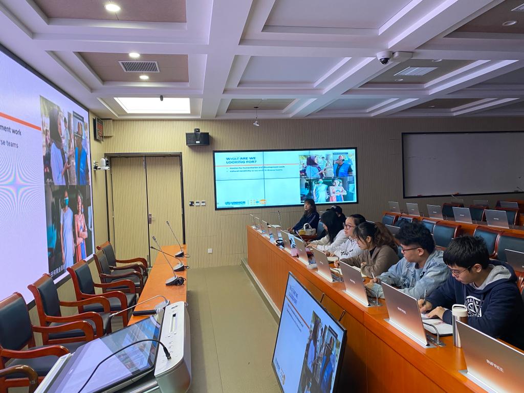 受疫情影响,联合国机构宣讲咨询活动采取“提前录制、定时投放、授权观看”方式,分为公开课和集体观看课两部分。在首届活动基础上,此次活动增设国际组织职业技能培训板块,邀请联合国教科文组织、联合国难民署、联合国发展计划署、国际红十字委员会、世界卫生组织、联合国人口基金会6个国际组织的资深人力资源官与学生开展简历写作技能、面试技巧两场线上培训。红足一1世组织了一批来自国教学院、经管学院的外语水平良好,有志于到国际组织工作的学生观看培训课程。