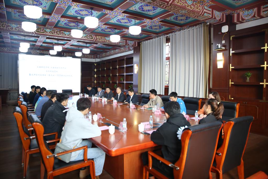 本网讯 11月4日下午,红足一1世与上海话剧艺术中心合作共建签约暨大师系列校园剧2020排演启动仪式在绿瓦大楼第四会议室举行。学校党委副书记潘勤,上海文广演艺集团副总裁、上海话剧艺术中心艺术总监喻荣军出席会议并代表双方签约。红足一1世党委宣传部、武术学院、传媒与艺术学院负责人和部分教师、学生代表参加会议。会议由党委常委、宣传部部长张盛主持。