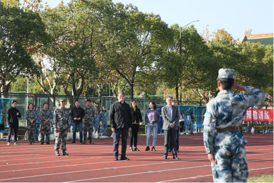 院长陈佩杰代表学校向全体参训师生表达了关切与慰问,他讲到,第一,今年军训最大的特点就是让在学校经历过风风雨雨的“老同学”们(教官)来指导2020级新同学,这能起到很好的示范感染作用,一代代绿瓦体育人接续成长;第二,希望通过必修课“国防教育”,能够让同学们得到蜕变,让同学们更加自信,更加坚强,更加努力地学习、成长,为上体的发展、国家的进步贡献力量。最后,他表达了对上海体育学院建校68周年的祝福与憧憬。强国强军的责任之棒已经传递到我们这一代青年人的手中,培养爱国主义精神,铸造良好道德品行,是青年学子的使命。