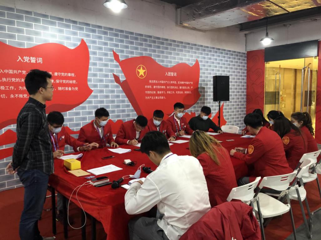 在11月8号,支部在进博会场馆志愿者之家组织学习“四史守初心,青春向进博”的主题内容。作为新青年,更加应当积极向党组织靠拢,全心全意为人民服务。最后集体进行入党誓词的宣誓,通过这次党课的学习,使我进一步端正自己的入党动机,更加坚信共产党信仰,争取尽早成为一名光荣的共产党员,为祖国的建设和伟大复兴的事业添砖加瓦。