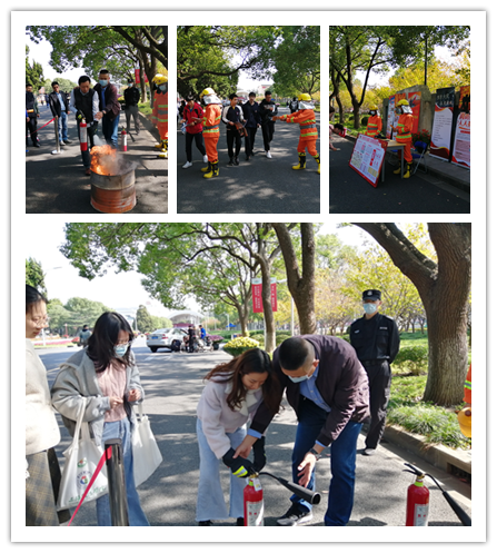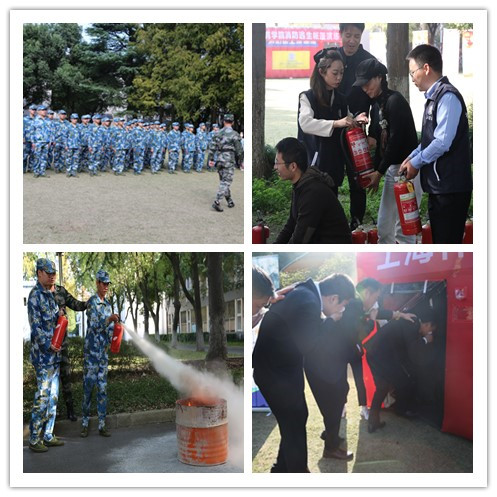 上海市消防协会宣传服务队队员对参加学习的师生及员工进行了现场消防知识培训和消防器材的操作演示。随后,参会全员进行了现场消防灭火的演练。