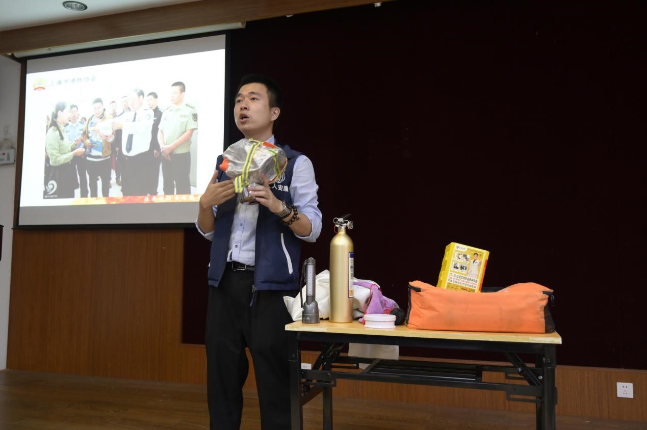 培训过程中,上海市消防协会宣传服务队的贾中昊老师为师生讲述了近几年来发生过的重大火灾,并深入分析了不同场景下的火灾防范、初起扑救与火场逃生,进行了消防常识的讲解。