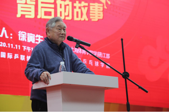 本网讯 11月11日下午,国际乒联终身名誉主席徐寅生做客国际乒联博物馆,作题为“聆听‘国球’背后的故事”的主题报告,分享他的体育人生和乒乓球运动的发展史。本次活动由学(研)工部、团委主办,中国乒乓球学院承办,特邀上海市科学道德和学风建设宣讲办公室调研员苏琪全程参与。
