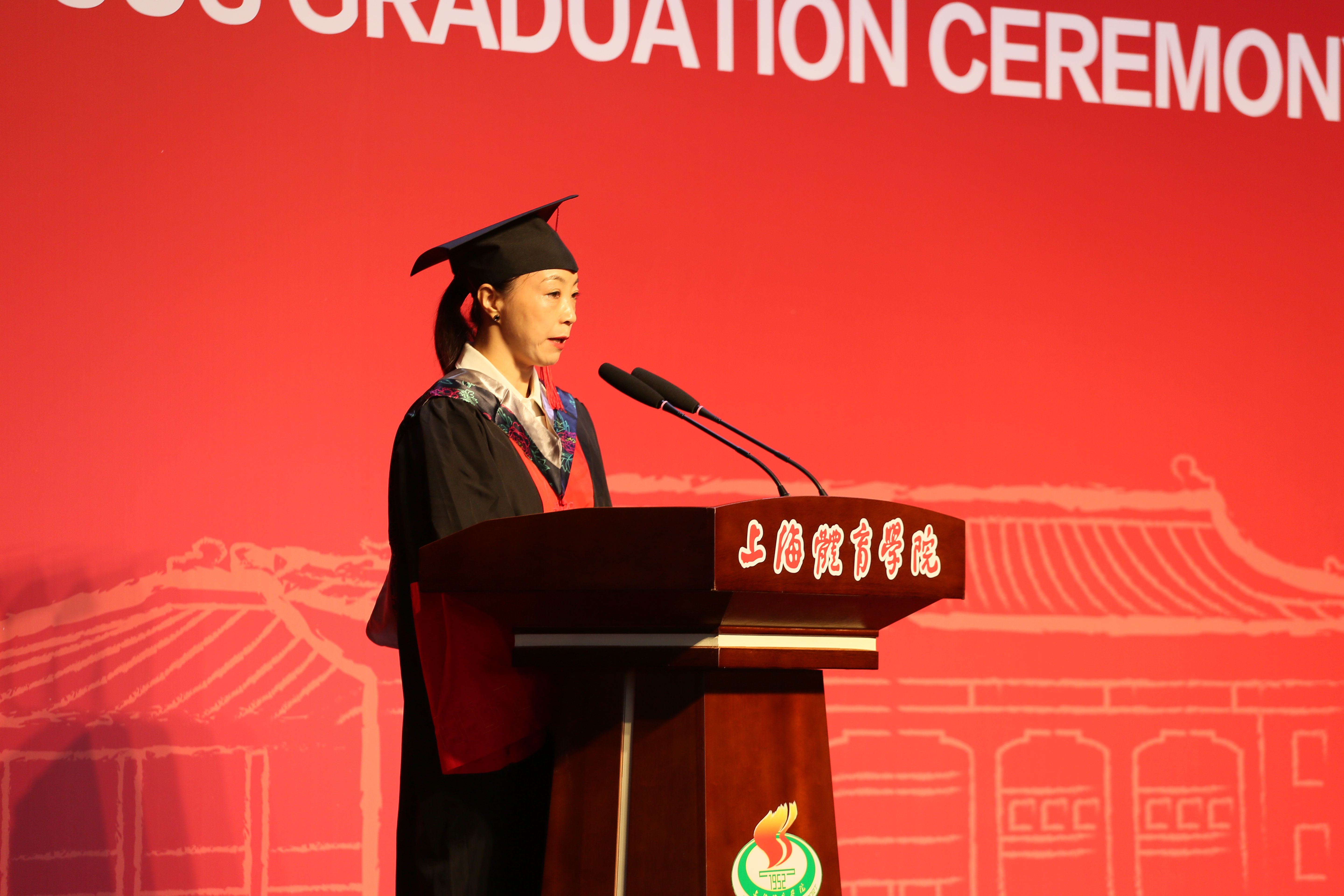 运动科学学院王晓慧教授作为导师代表发言。她感谢博士毕业生们与学校一同勇担使命、追求卓越,为学校事业发展贡献力量。她勉励博士毕业生们在未来岁月中不懈奋斗、坚持创新,在事业征程中快乐生活、关爱他人。