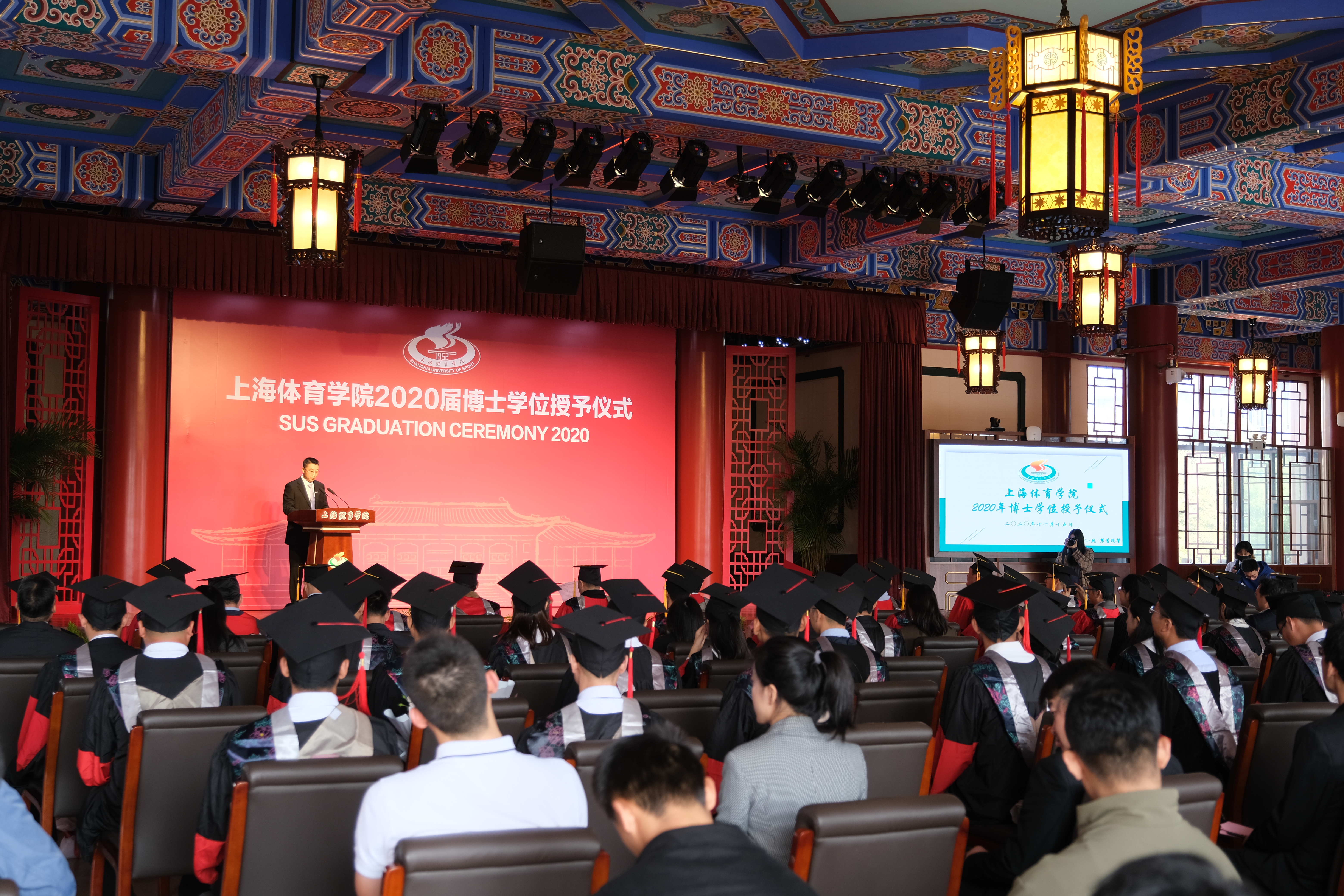 本网讯 11月15日,上海体育学院2020年博士学位授予仪式在绿瓦大楼礼堂隆重举行。党委副书记、院长,校学位评定委员会主席陈佩杰教授,党委副书记、副院长陈晓峰教授出席。获授学位的62位博士毕业生,导师代表、教师代表,红足一1世各学院党政负责人、相关职能部门负责人等一同参加仪式。仪式由研究生处处长唐炎教授主持。2020年入学的全体博士、硕士研究生以在线方式收看了直播实况。