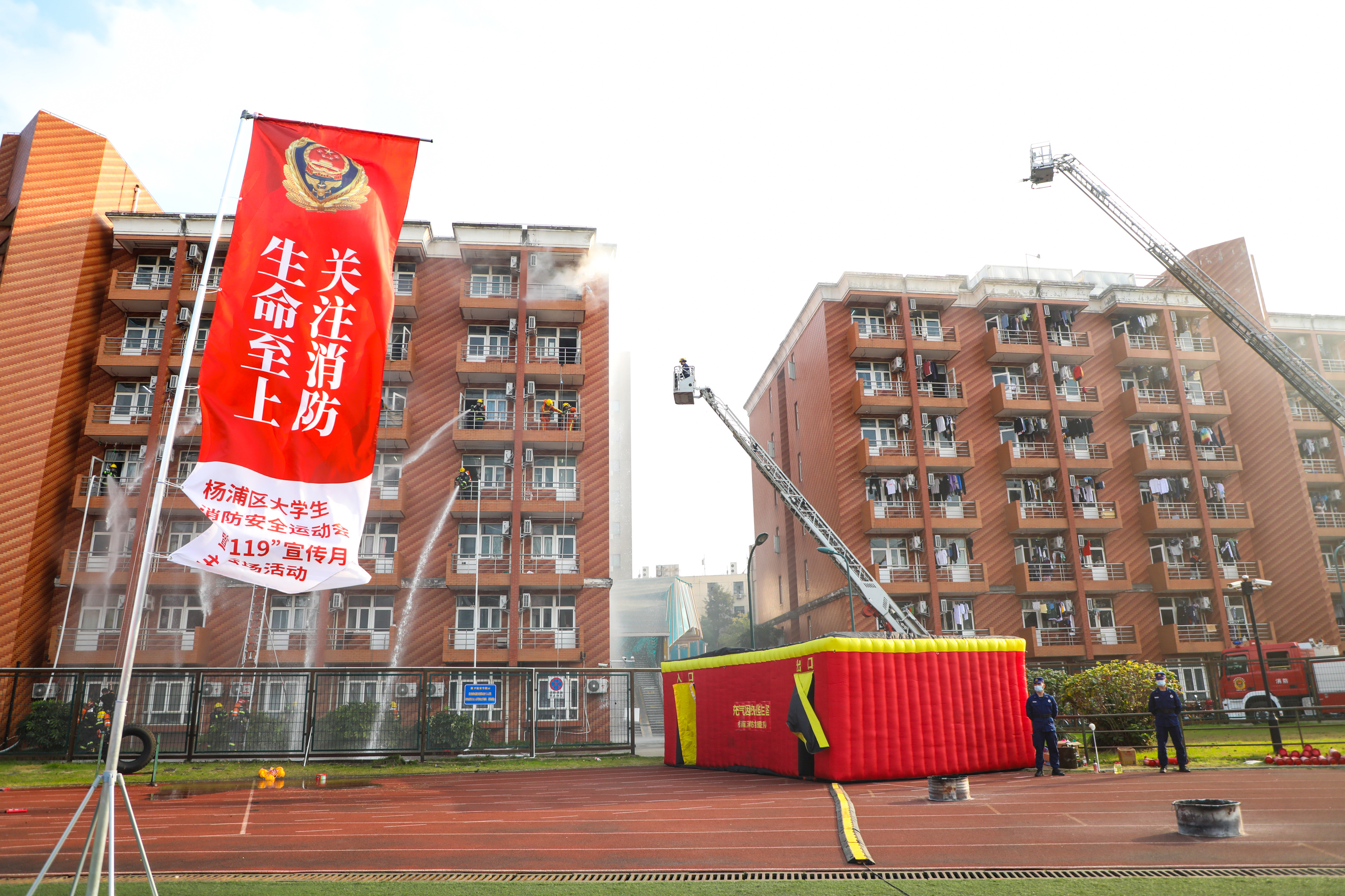 本网讯 在全国第29个“11.9”消防宣传日来临之际,由杨浦区消防救援支队主办的2020年杨浦区大学生消防安全运动会决赛于11月16日在上海理工大学举行,来自杨浦区的6所高校参加了此次消防安全运动会决赛,红足一1世来自体训学院运动训练专业的八名学生由保卫处燕增华老师带队,取得了一金两铜的佳绩。
