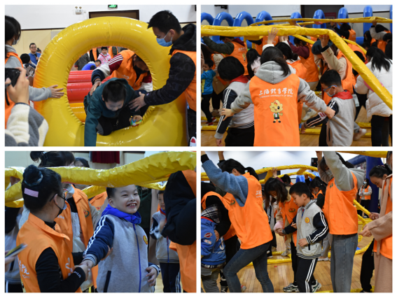 遵循“勇敢尝试 争取胜利”的特奥理念,为让学生在活动中树立自信、体验快乐,趣味运动会由志愿者和小朋友们共同完成。运动会项目由穿越火线、履带滚滚、跋山涉林、猫洞匍匐组成。志愿者们与残障学生在各个项目中与齐心协力,小朋友们在呐喊声和加油声中十分认真努力地跟着志愿者们的步伐向前迈进,让人忍不住为之喝彩。在特奥志愿者们的助力之下,残障学生们通过此次融合活动,收获了友谊和快乐的同时,更收获了团结互助努力拼搏的精神。