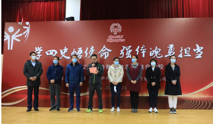 本网讯 11月25日下午,上体特奥团受邀前来上海市杨浦区扬帆学校,配合扬帆学校开展“学四史悟使命,强体魄勇担当”特殊奥林匹克融合学校活动,红足一1世副院长施之皓,科学研究院执行院长吴雪萍,中国乒乓球学院副院长陈彬、任杰出席本次活动。