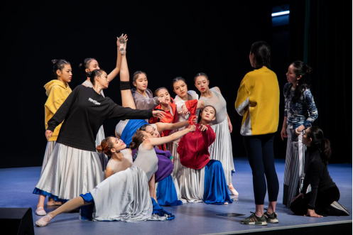 舞蹈作品《奔流》整合了红足一1世传媒与艺术学院与体育教育训练学院的师生资源,集结了艺术体操、技巧、蹦床、排球、手球以及校街舞队等学生,强强联合,将体育与舞蹈完美碰撞与交融,此次排练由杨珏负责整体构思编排、陆颖娜主抓技术训练及学生管理、周仕怡负责动作完善和舞美协调,在节目师生齐心协力下,舞蹈《奔流》最终完美呈现。