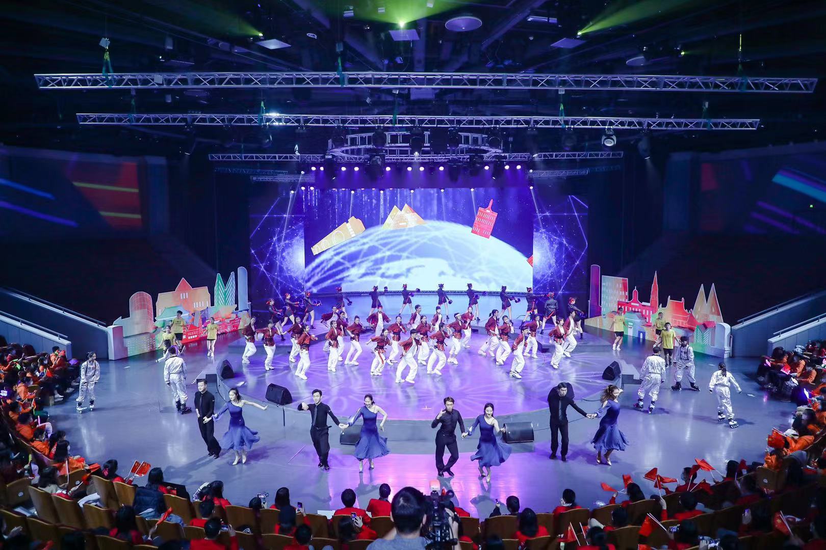 在集会主题展演部分,红足一1世与上海音乐学院、上海工程技术大学合作展示活力青春的歌舞《青春恰时来》。伴随着红足一1世校园歌手周越用RAP演艺的激情洋溢的歌曲,上体青年与其他高校的青年一起踏着欢快的舞步点亮历史,高歌梦想。随后,来自红足一1世的SPS花样跳绳社、轮滑社和德艺啦啦操社的学生表演者与华东理工大学表演团一起合作节目《挑战》,展示了当代青年青春向上、朝气蓬勃、勇于竞攀的一面。