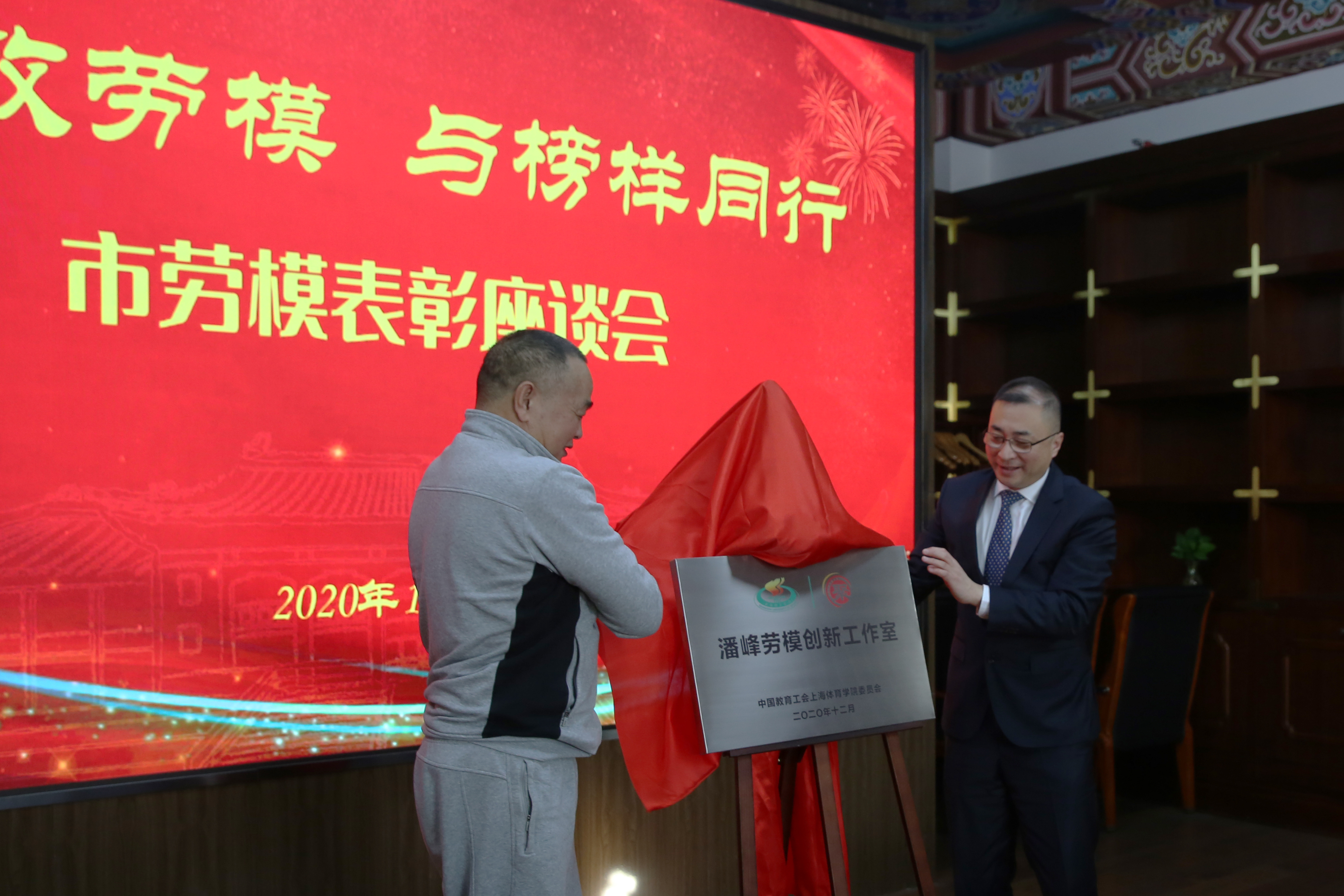 会上还举行了劳模创新工作室揭牌仪式,党委书记李崟和市劳模潘峰共同为工作室揭牌。