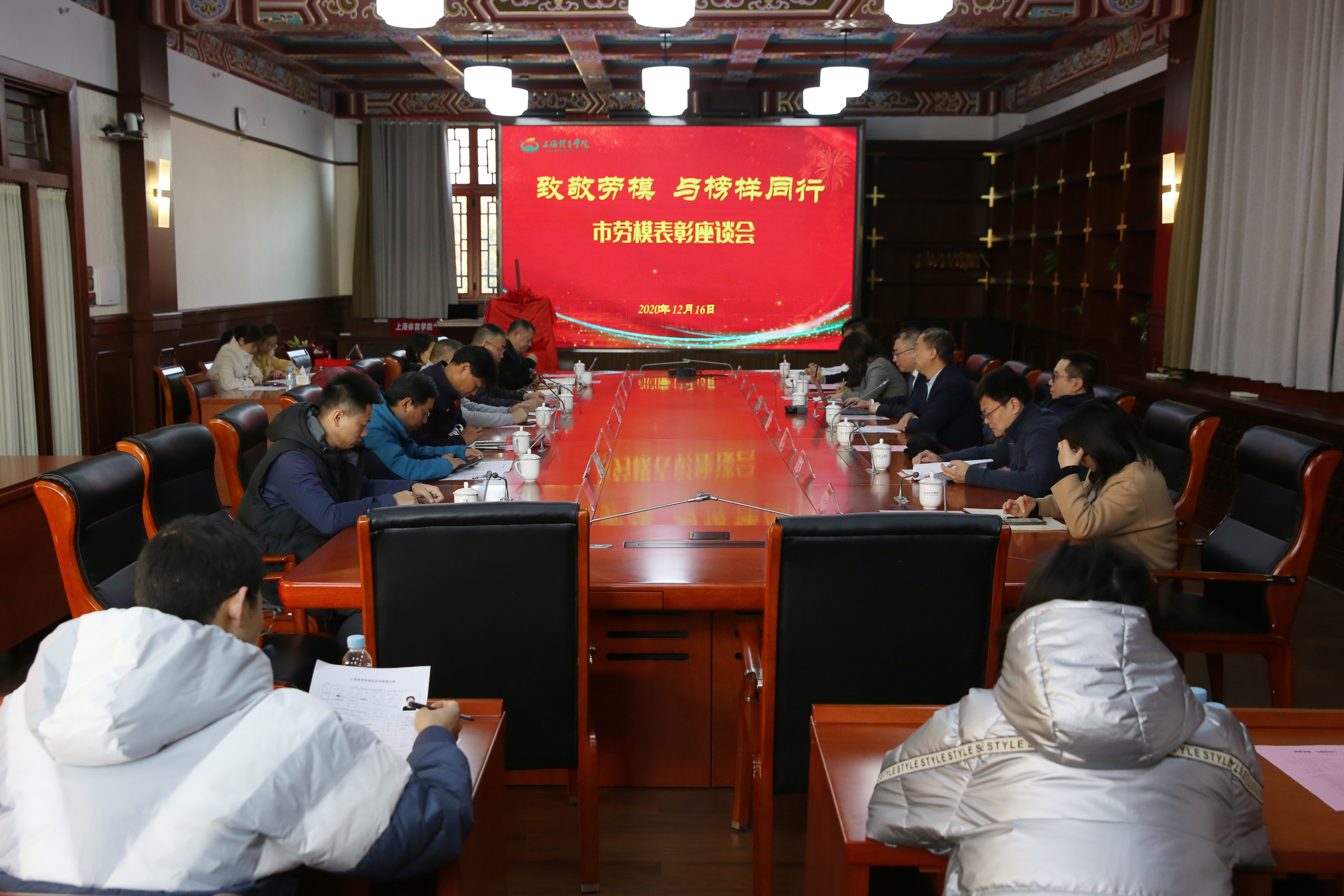 本网讯 12月16日上午,“致敬劳模 与榜样同行”上海市劳动模范表彰座谈会于绿瓦大楼第四会议室举行。党委书记李崟、党委副书记杨玲、副院长施之皓、2015—2019年上海市劳动模范潘峰、相关职能部门负责人、竞校党政班子和师生代表出席了本次会议。会议由党委副书记、工会主席潘勤主持。